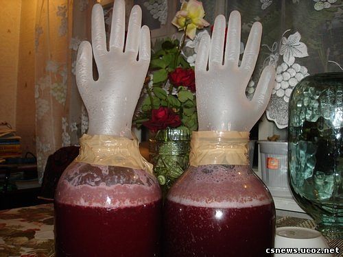 Домашнее вино из... старого никому не нужного варенья! Ну не можем мы жить без варенья. Пусть потом засахарившиеся банки стоят годами на дальних полках кладовок и заполняют столь необходимое место в холодильнике. Но все равно каждую осень начинается эпопея под названием «Пора варить!». Сахар покупается мешками, все конфорки на плите наглухо заняты тазами и прочими емкостями. Банки стерилизуются массово. В общем, на несколько дней кухня превращается в ад – правда, пахнет там не серой, а гораздо лучше… Но ажиотаж заканчивается – и сразу же встает вопрос: что делать с прошлогодним вареньем? Выкидывать-то жалко. Правильно, выкидывать не надо. Ведь прошлогоднее варенье – отличное «сырье» для производства самых разнообразных алкогольных напитков. Домашнее вино из старого варенья обладает легким, терпким вкусом и пьянящим ароматом, в зависимости от того, какое варенье использовалось для приготовления, будут отличаться «нотки» и «букет» этого благородного напитка. Варенье ягодное или фруктовое – 1 литр Вода кипяченая(остывшая)– 3 литра Изюм-110 грамм Шаг 1: подготавливаем банку Перед тем как мы будем готовить вино, подготовим тару. Для этого берем банку и тщательно обрабатываем ее пищевой содой с помощью кухонной губки для мытья посуды. Затем тщательно ополоснем несколько раз теплой проточной водой. После этого нужно обдать емкость кипятком из чайника. Внимание: будьте крайне осторожны, чтобы во время этой процедуры не обжечь кипятком руки или другие части вашего тела. Важно также помнить, что посуда для приготовления вина должна быть стеклянной, керамической или эмалированной, но ни в коем случае не металлической, чтобы не было окислительной реакции во время процесса брожения алкогольного напитка. Шаг 2: готовим домашнее вино из варенья – первый этап Наливаем воду в кастрюлю и ставим на огонь. В это время берем банку с домашним вареньем и с помощью столовой ложки перекладываем его в подготовленную тару, туда же высыпаем предварительно промытый под водой изюм. После того, как вода закипит, отставляем ее в сторону и даем остыть до комнатной температуры. Для приготовления вина вам потребуется теплая кипяченая вода. Внимание: ни в коем случае не должен быть кипяток! Теплую кипяченую воду выливаем в бутыль с вареньем и изюмом. При помощи деревянной ложки все ингредиенты хорошо перемешиваем и закрываем емкость капроновой крышкой. Банку ставим в теплое место. В летний период можно ее оставить на кухне – там всегда жарко, а зимой – под батарею в одной из комнат, для того чтобы в нашей смеси начался процесс брожения. Главное – чтобы место было укромным от детей. Шаг 3: сцеживаем мезгу По истечению 10 дней берем банку с забродившими винными ингредиентами и открываем крышку. Так как вся мезга после процесса брожения поднимется со дна к горлышку банки, осторожно при помощи столовой ложки убираем ее с поверхности жидкости и перекладываем в марлевую ткань, предварительно подставив под нее чистую миску или кастрюлю, чтобы выжатая густая смесь из мезги сливалась туда. Жмых достаем из марли и выбрасываем ... Шаг 4: готовим домашнее вино из варенья – второй этап Оставшуюся жидкость из банки также процеживаем через марлю и сливаем в туже емкость, где находится выжатая смесь из мезги. Получившийся продукт первичного брожения называется суслом. Тепер